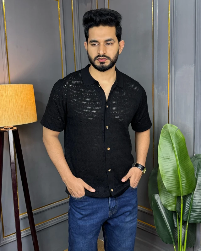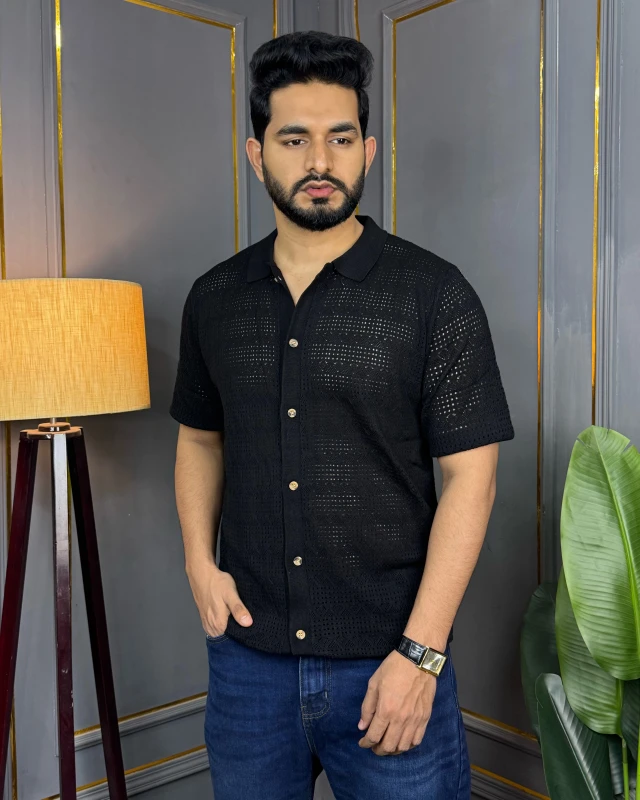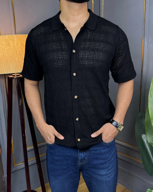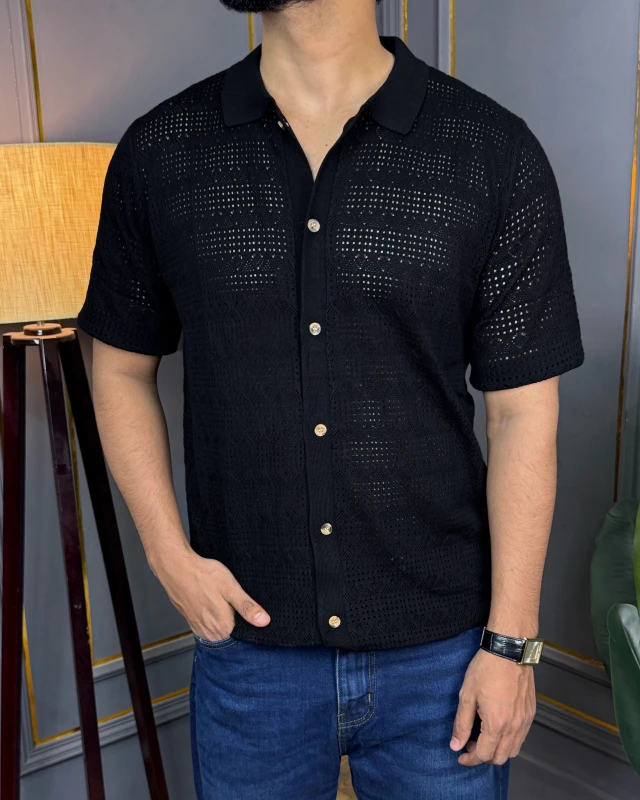 Premium Knit Structured Half Sleeve Shirt - Imperial Black