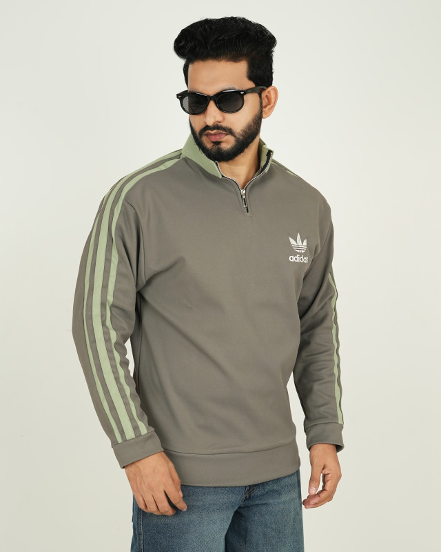 Built for guys who love effortless style, this soft-touch high GSM half zipper sweatshirt brings you the perfect mix of sporty and classy. The fresh pastel green tone, signature stripes, and high-neck zip design add a modern edge to your winter fit. This high GSM premium fabrics will give you maximum warmth and comfort on this winter.