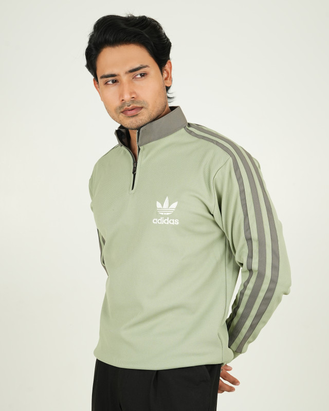 Built for guys who love effortless style, this soft-touch high GSM half zipper sweatshirt brings you the perfect mix of sporty and classy. The fresh pastel green tone, signature stripes, and high-neck zip design add a modern edge to your winter fit. This high GSM premium fabrics will give you maximum warmth and comfort on this winter.
