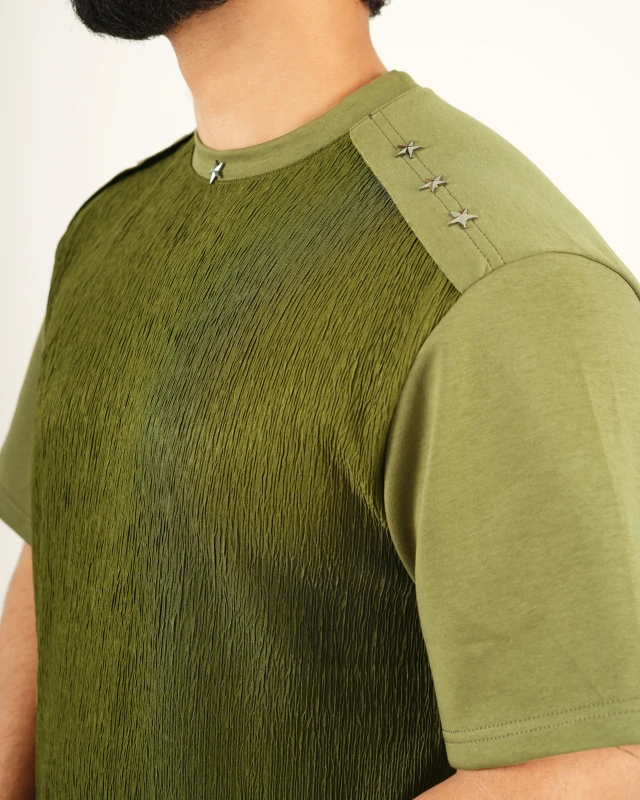 Premium China Imported Luxury Textured T-Shirt - Olive