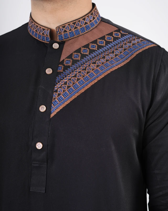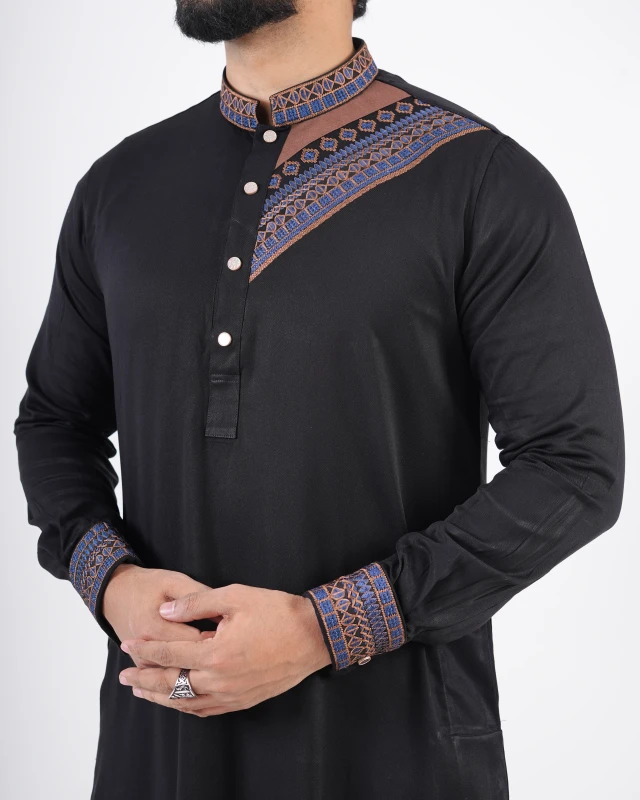 Premium Embroidery Design Panjabi - Black