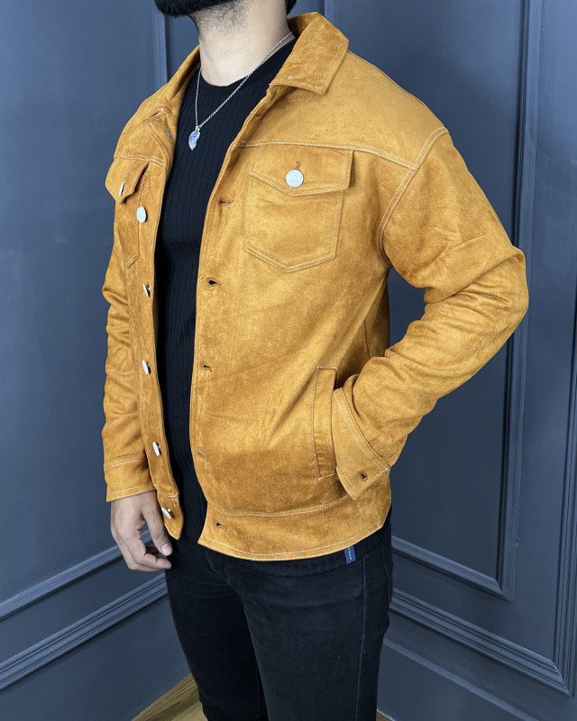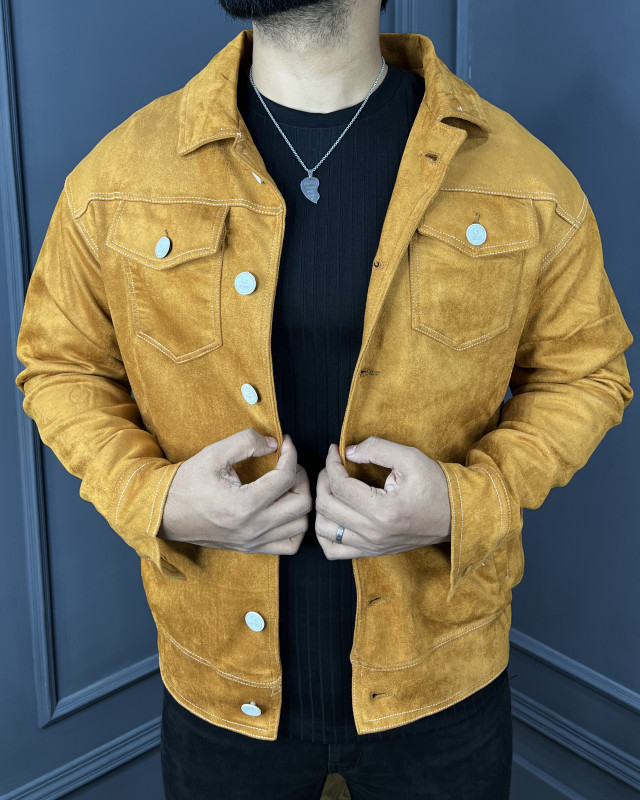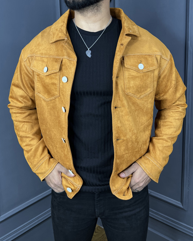 Premium Quality Suede Leather Trucker Jacket - Mustard