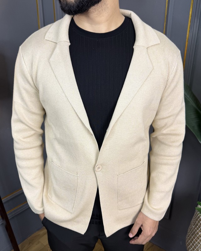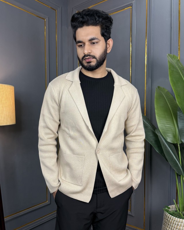 Made from high-quality sweater knit fabric, it offers a soft stretch, breathable feel, and a naturally structured silhouette. The clean lapel design, minimalist button closure, and modern cut make it ideal for office wear, smart casual outings, meetings, or evening looks.