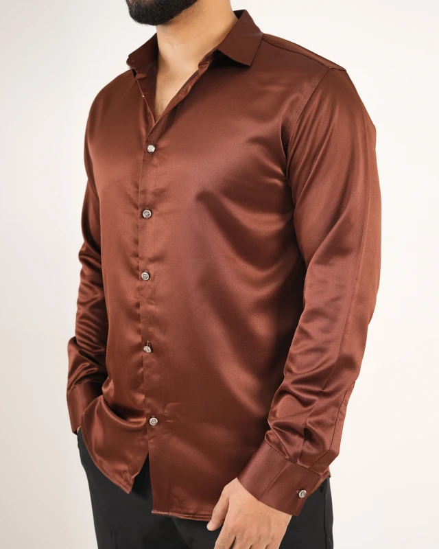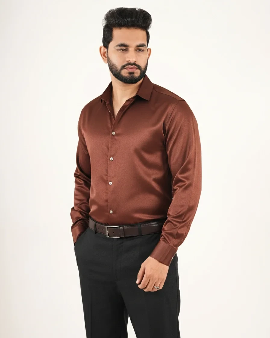 Command attention the moment you walk in. This premium crystal-finish shirt blends a rich crimson tone with a sleek, tailored silhouette—crafted for men who carry confidence effortlessly.