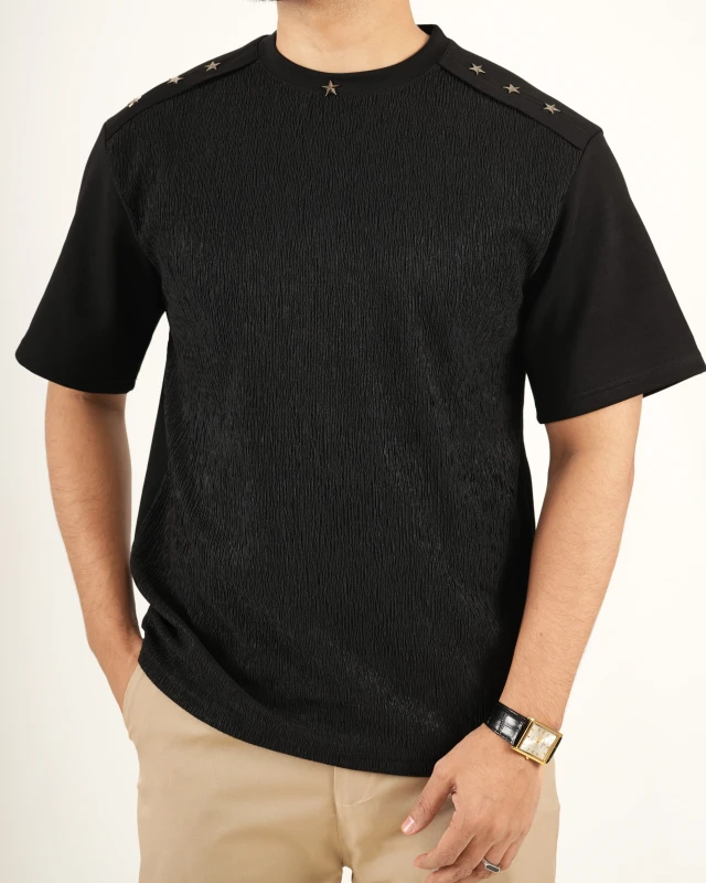 Premium China Imported Luxury Textured T-Shirt - Black