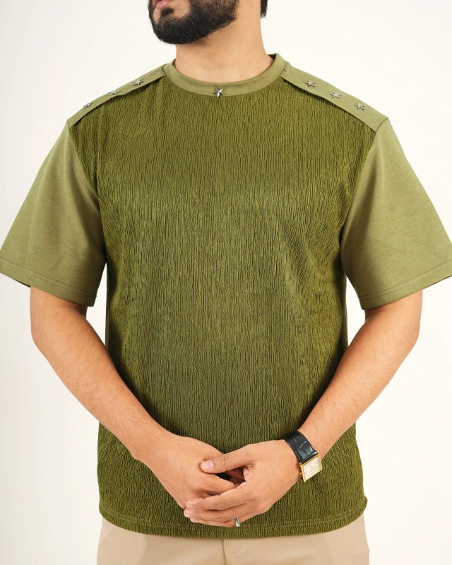 Premium China Imported Luxury Textured T-Shirt - Olive