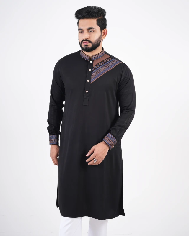 Premium Embroidery Design Panjabi - Black