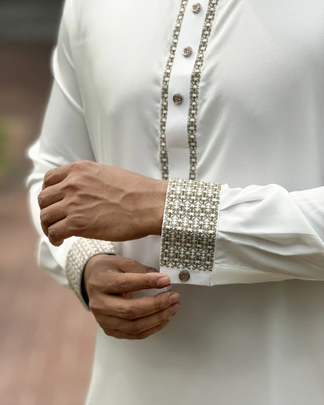 Tailored for comfort and a clean, elegant silhouette, this piece ensures you look effortlessly polished at every Eid gathering.