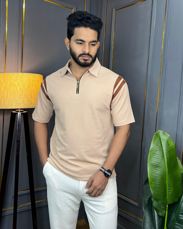 Premium Quality Half Zipper Baggy Polo - Light Beige