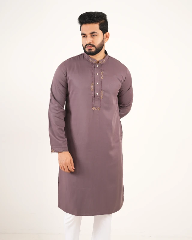 Premium Zardozi Work Design Panjabi - Mauve Taupe