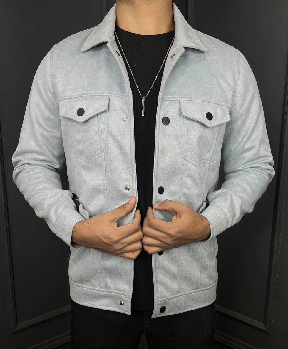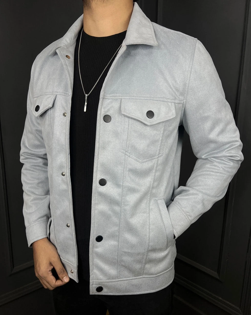 Premium Quality Suede Leather Trucker Jacket - Blue Ash
