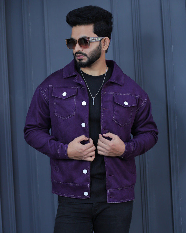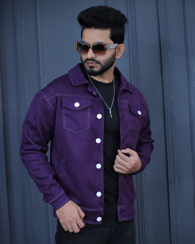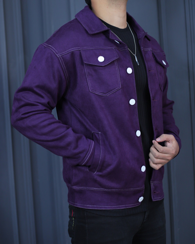 Premium Quality Suede Leather Trucker Jacket - Purple